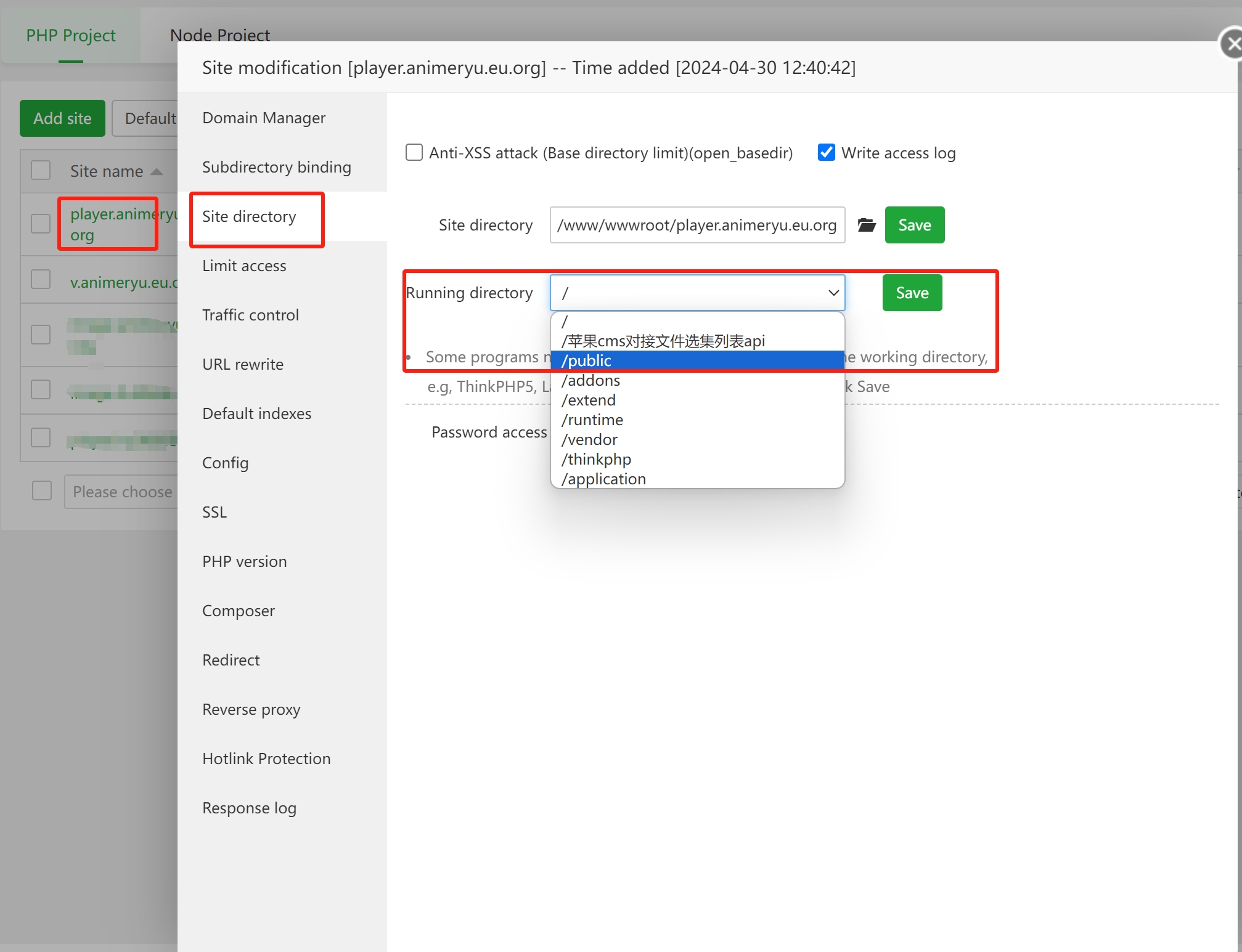 通过aaPanel进入网站设置页面,选择URL rewrite——maccms保存即可。