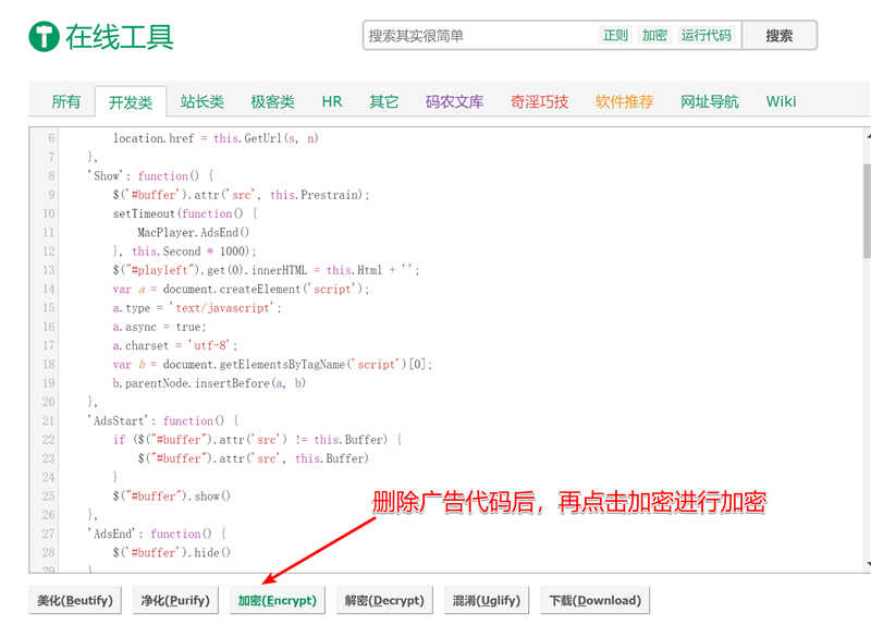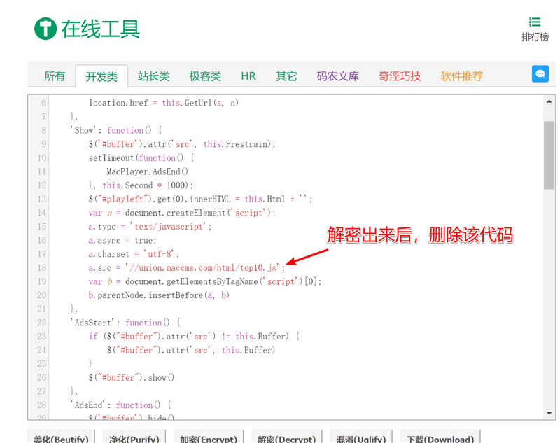 去后门方法:1、打开player.js发现加密了,加密方式为eval(function(p,a,c,k,e,r){})