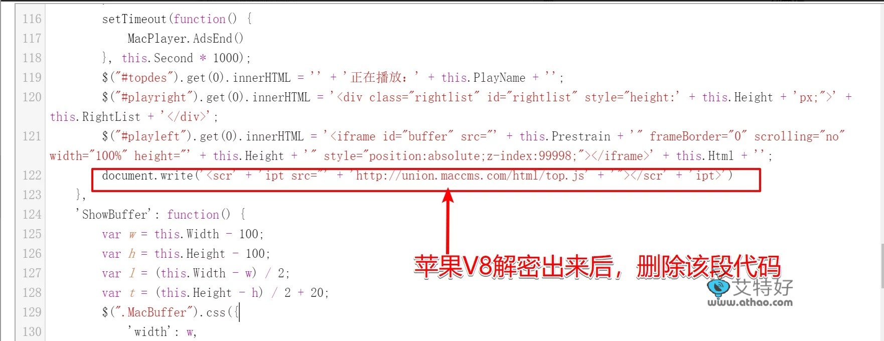 该player.js文件是加密代码,需要先解密该文件,然后重新把加载广告的JS代码删除后,重新上传就可以避免这个播放器JS文件挂马留后门的问题。