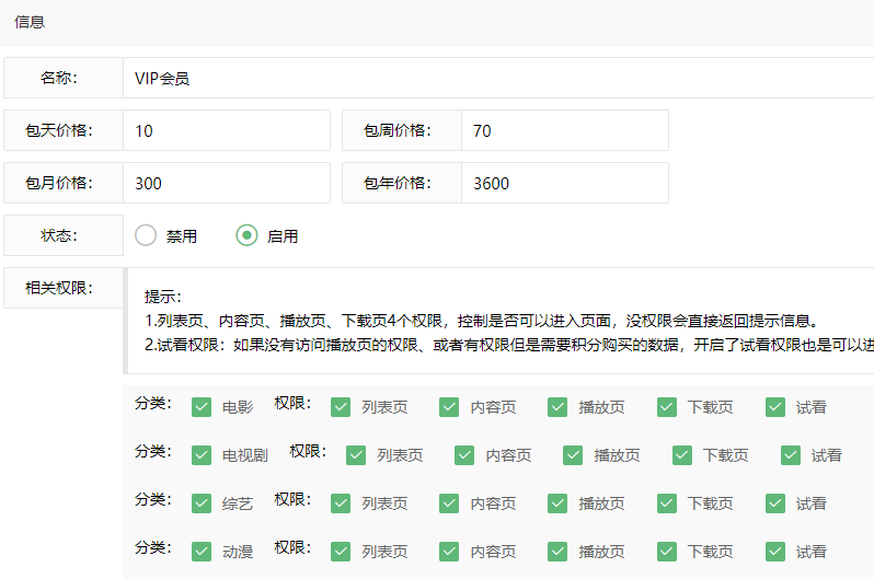 苹果cmsV10 会员收费设置 会员VIP权限设置教程