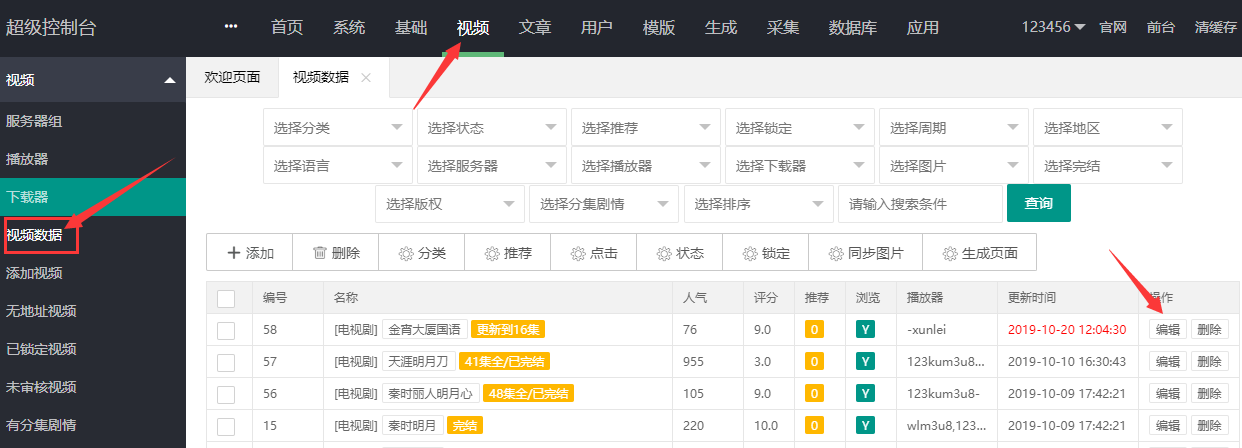 设置完毕后,进行视频积分设置,来到视频,视频数据管理